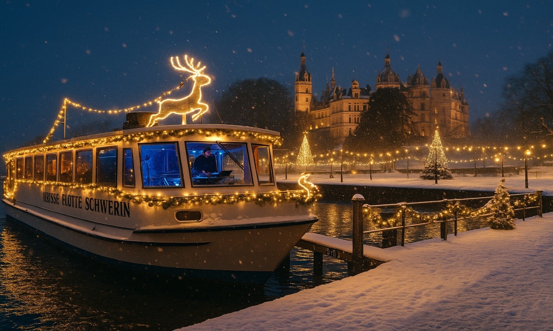 Eine exklusive Dinner- & Partyfahrt mit Charterboot erwartet Sie – festlich geschmückt und stimmungsvoll beleuchtet. Während die Lichter von Schwerin vorbeiziehen, genießen Sie ein mehrgängiges Menü mit Getränkeservice. Für musikalische Unterhaltung sorgt auf Wunsch Live-Musik oder ein DJ an Bord, der für eine einzigartige Feieratmosphäre sorgt.