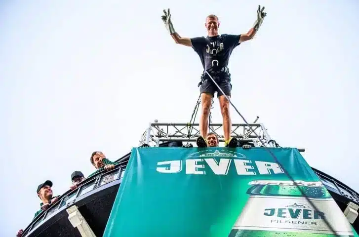 Bei unserem Eventmodul House-Running ist der Name Programm: Sie und Ihre Mitarbeiter oder Eventteilnehmer lernen das faszinierende Gefühl kennen, in schwindelerregender Höhe auf dem Dach eines Gebäudes zu stehen. Mit Sitzgurt und Seilen gesichert wagen Sie es, sich über die Kante zu beugen und für einen Moment fallen zu lassen. Im nächsten Augenblick befinden sich Ihre Füße an der senkrechten Gebäudewand – und Sie laufen mit dem Gesicht nach unten in die Tiefe. Ihr Herz pocht und Sie genießen die Freude, die nur phänomenale Action dieser Art hervorbringen kann.