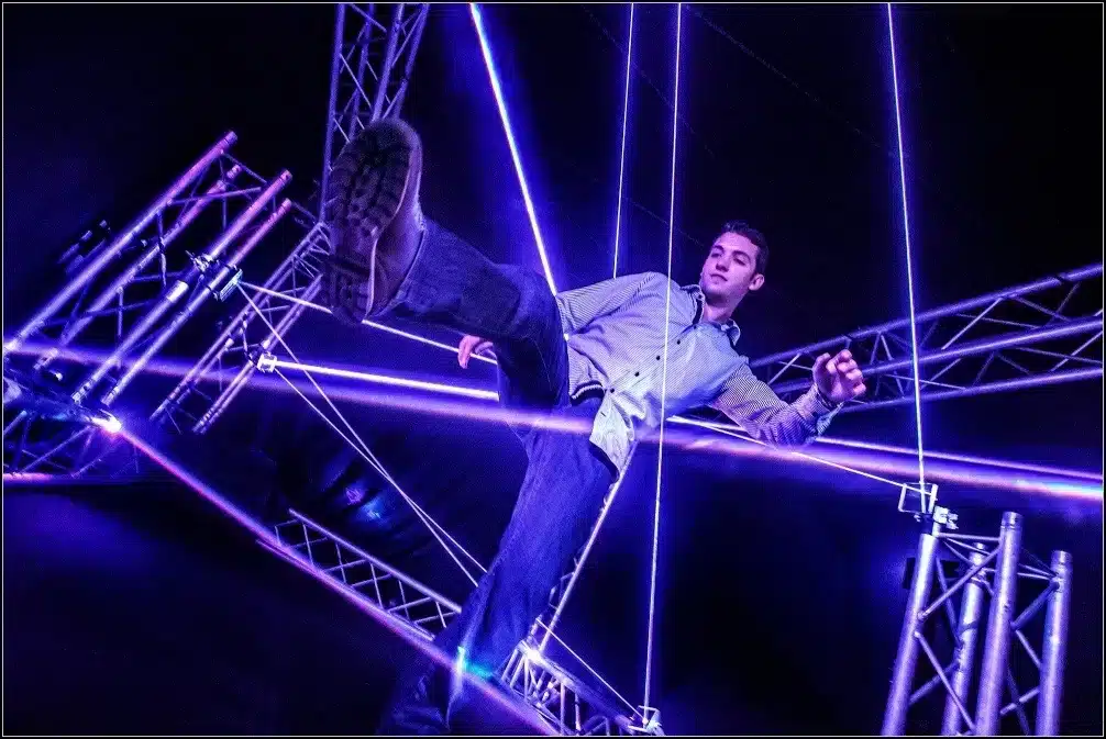 BEI DIESEM EVENTMODUL BEGEBEN SICH IHRE GÄSTE IN EINEN FUTURISTISCH GESTALTETEN IRRGARTEN. DIE HINDERNISSE, DIE ES ZU ÜBERWINDEN GILT, SIND SICHTBAR ABER NICHT SPÜRBAR: LASERSTRAHLEN!
