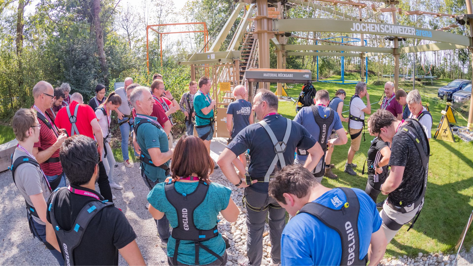 Erleben Sie einen einzigartigen Team Mission Parcours voller spannender Herausforderungen, die Geschicklichkeit und Zusammenarbeit fördern! In verschiedenen Stationen bewältigen Sie kreative Aufgaben, wie das gemeinsame Bauen einer Brücke, das Transportieren von „Gefahrgut“ mit Bällen und Seilen und den Turmbau mit Platten und Bechern. Jedes Teammitglied bringt seine Stärken ein und arbeitet gemeinsam auf das Ziel hin.
